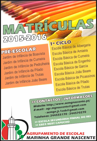 O Agrupamento de Escolas Marinha Grande Nascente convida toda a comunidade escolar para estar presente no próximo dia 02 de outubro, pelas 17h30, no Polivalente da Escola Secundária Pinhal do Rei, na cerimónia de entrega de diplomas de conclusão do ensino secundário e diplomas de mérito aos alunos do agrupamento que se distinguiram ao longo do ano letivo 2014/2015.