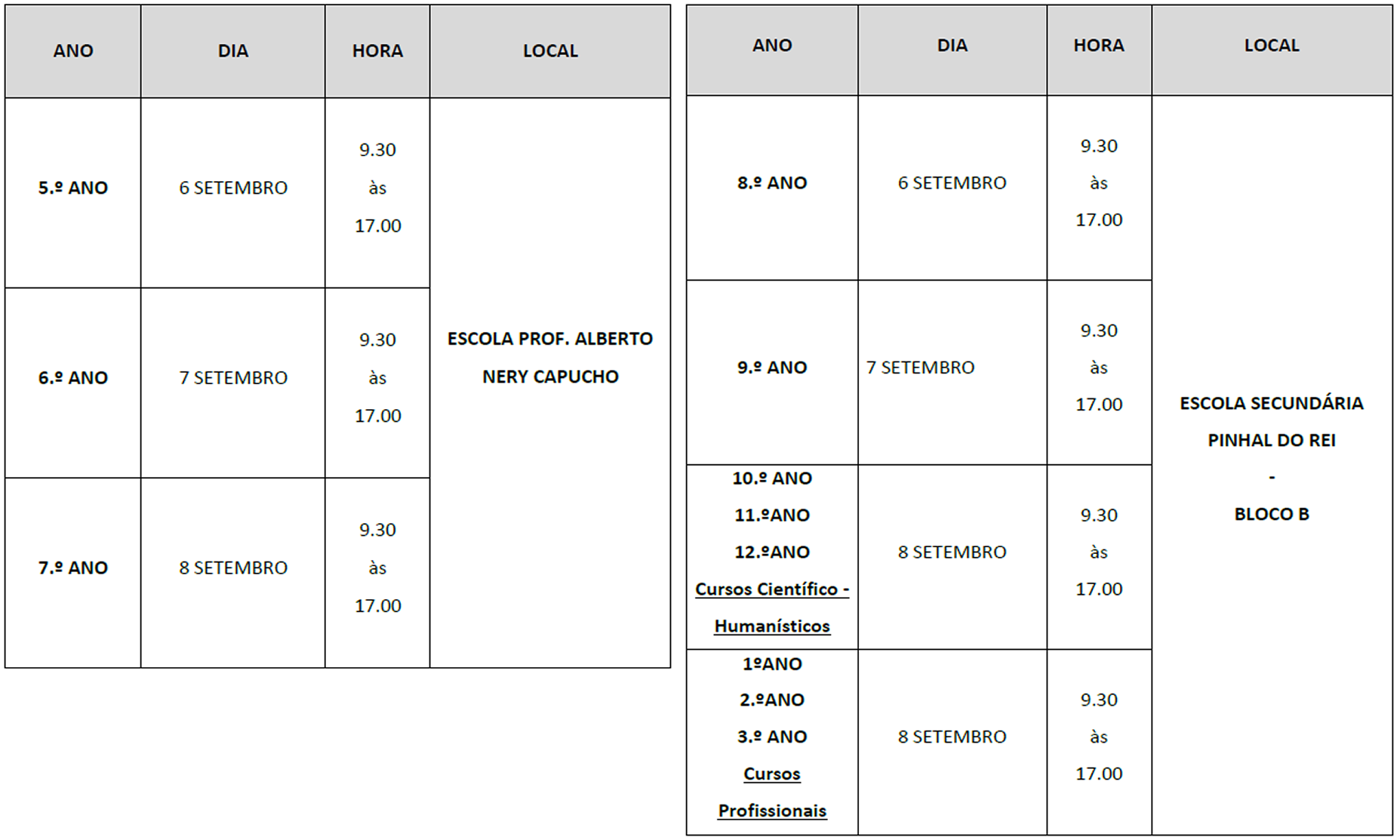 NOTA: Todos os alunos estão cobertos pelo seguro escolar